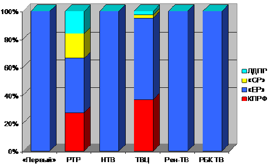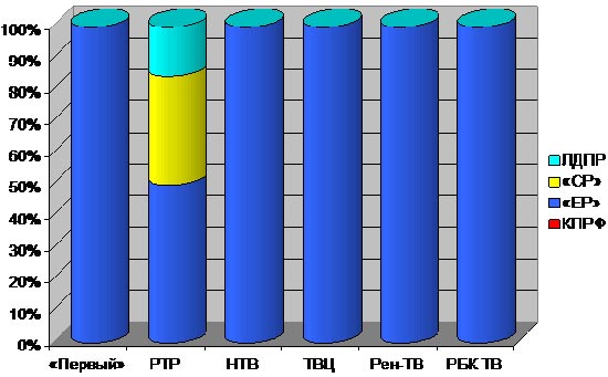 | Телеканал | КПРФ | «ЕР» | «СР» | ЛДПР | |