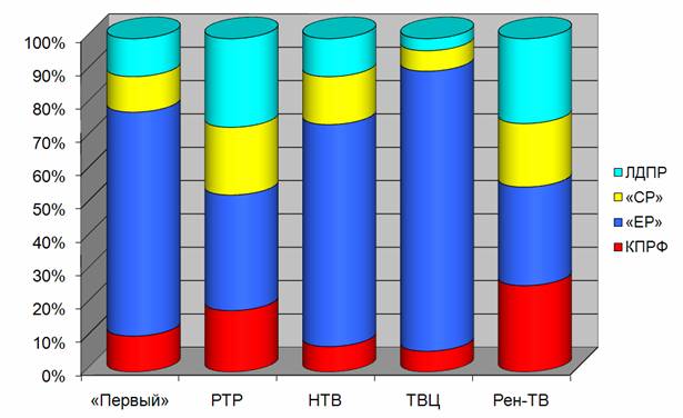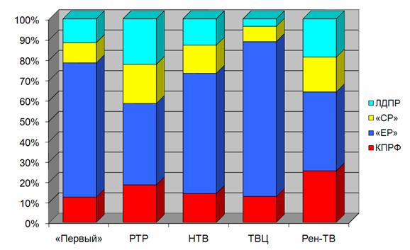 | Телеканал | КПРФ | «ЕР» | «СР» | ЛДПР | |