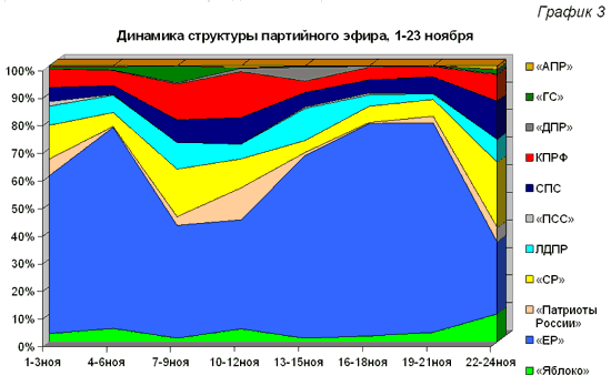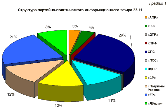 Структура партийно-политического информационного эфира за 23 ноября представлена в Табл.3