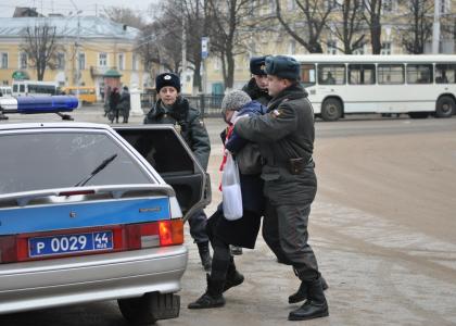 Спустя 5 минут одиночного пикета появились сотрудники милиции и силой начали заталкивать Татьяну в машину. Через три часа коммуниста отпустили, выдав на руки протокол. Вот такая она - костромская "демократия". Но костромичи поняли, что это такое, еще до 4 декабря - за коммунистов в Костроме проголосовали более 30 процентов избирателей, за ЕР - чуть более 25.