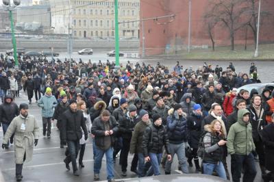 В полдень представители КПРФ начали движение в направлении Болотной площади. За ними пошли и колонны всех остальных демонстрантов. «Путь проходил по набережной, через мост, и на Болотную площадь. Шествие длилось 30-40 минут. Отмечу, что нами скандировались лозунги. Среди них – призывы к отставке Чурова. Сопровождалось все это звуками свистков», - сообщил А. Ющенко.