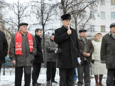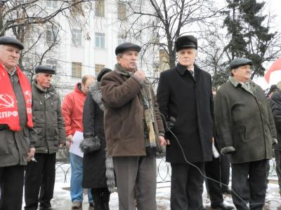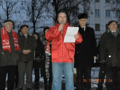 9 декабря в г.Рязани возле памятника В.И. Ленину прошла встреча депутата Государственной Думы, лидера рязанских коммунистов Федоткина В.Н. с избирателями, посвященная массовым фальсификациям в ходе предвыборной кампании и в день голосования. Перед собравшимися (а их было около 500 человек) выступили также руководитель фракции КПРФ в Рязанской областной Думе В.Г. Малюгин, депутаты Рязанской городской Думы от КПРФ Пыленок П.И. и Волкова Э.Н., руководитель рязанского комсомола Кузьмин А.В. и один из руководителей рязанского отделения Союза советских офицеров Котов Л.Н.