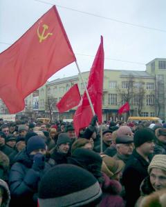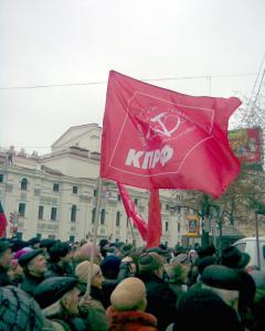 Уже на подходе к площади возле «Утюжка» бросался в глаза алый цвет развевающихся знамён. Коммунисты не были инициаторами акции, но своей организованностью, сплочённостью, чёткими оценками ситуации придали ей тональность не только протеста против нарушений на выборах, но и в целом неприятия нынешней власти и либерального капитализма.