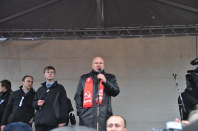 Среди выступавших - депутат-коммунист городского Законодательного собарния Санкт-Петербурга Владимир Дмитриев и народный ректор Военмеха, коммунист Ю. П. Савельев.