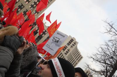 Отметим, что актив КПРФ принял участие в акции совсем не потому, что он питает нежные чувства к организаторам митинга, которые зачастую, несмотря на то, что над площадью развевались десятки красных флагов, выкрикивали антикоммунистические лозунги. Представители Компартии пришли на проспект Сахарова с целью поддержать граждан, протестующих против фальсификации выборов и своим участием продемонстрировать заинтересованность КПРФ в отмене их итогов – чтобы до каждого дошла мысль о том, что коммунистов не устраивает текущий порядок вещей, о чем не раз говорил во время своих выступлений Г.А. Зюганов.