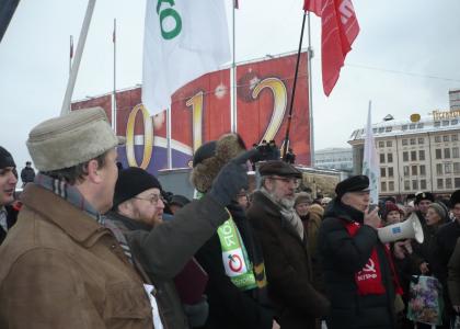 Митинг всё равно состоялся, только с другой стороны Дома правительства области, но его ещё лучше было видно с центральных магистралей города – улицы Советская и проспекта имени В.И.Ленина. Кстати, многие водители, проезжавшие мимо, как и 2, и 10 декабря в знак приветствия на глазах у гаишников сигналили митингующим.