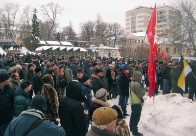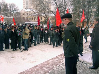 Отрывая митинг, первый секретарь обкома ЛКСМ Дмитрий Филяев озвучил те мизерные уступки по реформированию политической системы, которые предложил президент Медведев. Ведущий подчеркнул, что протестные акции дают свои результаты, поскольку недовольство населения заставляет власть задуматься. Тов. Филяев сообщил также о решении Совета при президенте РФ по теме «Соблюдение прав человека в ходе парламентских выборов 2011 года», в котором выражена необходимость отправить в отставку главу ЦИКа Чурова. Эта новость вызвала аплодисменты. Кто-то из толпы предложит отправить его как можно дальше.