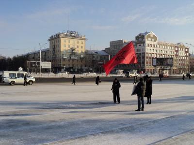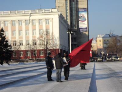 Активист «Барнаульской политической коммуны» Артем Манаков пикетировавший на пл. Советов возле памятника Ленина с красным флагом и плакатом: «Свободу Сергею Удальцову!» оказался в центре внимания полиции и представителей администрации города Барнаула. Минут двадцать пикетирование проходило спокойно: барнаульцы подходили, интересовались, чем вызвана акция протеста, узнав ситуацию, выражали поддержку Сергею Удальцову. Затем появился наряд патрульно - постовой службы, они попросили предъявить документы и зафиксировали данные. После их ухода подъехала газель дежурной части полиции и находившиеся в ней сотрудники внутренних органов начали вести видеосьемку. Через несколько минут из газели осторожно вышел человек в штатском с папочкой под мышкой. Он долго мялся, ходил кругами вокруг активиста. В конце концов как-то очень настороженно вступил в разговор с Артемом Манаковым. Не представившийся гражданин попытался составить протокол об административном нарушении, но депутат от КПРФ в АКЗС Марк Козловский вмешался в ситуацию и объяснил полисмену, что молодой человек ничего противозаконного не совершает, а одиночное пикетирование не требует согласования администрации. Тогда сотрудник правопорядка пытался получить объяснения от пикетчика, но и объяснительную Артем также отказался писать. Удовлетворившись данными о личности пикетчика, сотрудник удалился в передвижной пункт дежурной части, предупредив, что концентрация граждан вокруг пикета нежелательна.