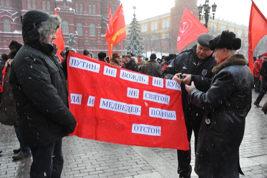 21 января в Москве прошла многотысячная акция протеста под лозунгом: «За честные выборы! Зюганов – наш президент!», «Власть и собственность – народу!»