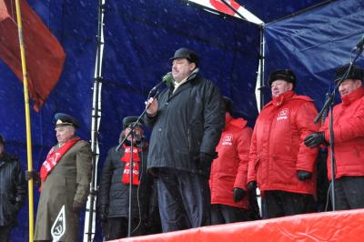Митинг открылся исполнением Гимна Советского Союза. Затем слово было предоставлено лидеру Компартии и народно-патриотических сил Геннадию Андреевичу Зюганову.