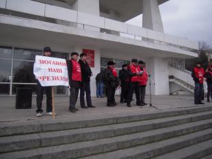 В пятницу, 20 января, в Махачкале на Родопском бульваре перед Аварским театром Дагестанское республиканское отделение КПРФ в рамках всероссийской акции протеста провел митинг «За достойную жизнь и честные выборы», «Зюганов наш Президент».
