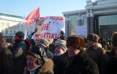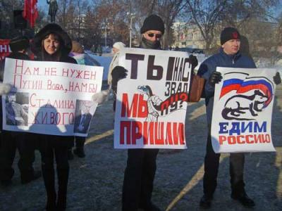 Протестующие принесли с собой плакаты: «Нам не нужен Путин Вова, нам бы Сталина живого!»; «Ты нас звал, ПУ? Мы пришли!»; «Едим Россию»; «За честные выборы»; «Переустановим систему»; «Настоящие медведи вне политики»; «А ты готов бороться за свое будущее?!»; «НАРОД – работодатель! ПРЕЗИДЕНТ – наемный работник!»; «Вступай в «Гражданский контроль»; «Мы не бандерлоги!» и другие.