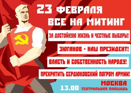 Отдел рабочего, профсоюзного движения и связям с общественными организациями ЦК КПРФ распространил, утвержденные Штабом протестных действий, лозунги и призывы к Всероссийской акции протеста 23 февраля :