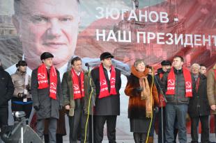 Начался митинг с выступления народного певца Андрея Овсянникова, затем прозвучал гимн СССР. Среди тех, кто подходил к микрофону – лидеры тульских коммунистов Ю.В.Афонин и О.А.Лебедев, депутаты Н.А.Жуков и С.П.Куприянов, доверенное лицо Г.А.Зюганова на выборах президента РФ В.О.Мишина, активистка КПРФ и Левого фронта Жанна Позднякова, член первичного отделения КПРФ села Спасское Новомосковского района Ольга Шувалова, член комитета "За честные выборы" В.В.Отставных.