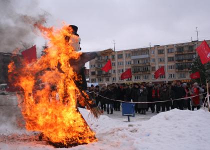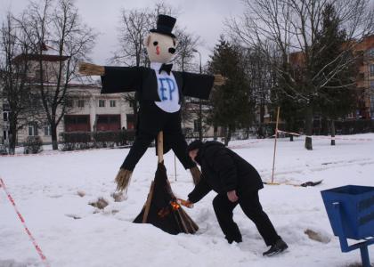 Митинг, по русским традициям, закончился сожжением нечисти в виде чучела «белого медведя», наряженного в американский фрак с долларами в глазах со знакомой аббревиатурой «ЕР».