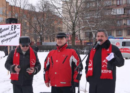 На митинге выступили: первый секретарь Псковского горкома КПРФ депутат областного Собрания Федоров А.Н.; кандидаты в депутаты городской Думы - заместитель председателя областного профсоюза военнослужащих Литвяк В.И. и сопредседатель общественной организации «Гражданское общество» Костец С.И., редактор газеты «Псковский рубеж» Дуля В.Ф. и первый секретарь Псковского обкома КПРФ депутат Госдумы Никитин В.С.