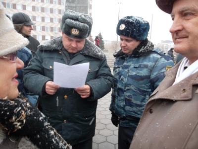 Сотрудники правоохранительных органов пытались воспрепятствовать проведению митинга. Тогда депутаты Законодательного Собрания области В.Новиков, городского Совета Н.Мунжасаров, В.Индейкин объявили встречу с избирателями. Состоялся обстоятельный разговор, вскрывающий массу нарушений выборного законодательства. Выступающие выражали недоверие работе избирательных комиссий и непризнание итогов выборов, а также требование привлечения к административной и уголовной ответственности фальсификаторов.