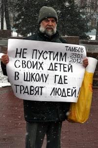 23 марта в Тамбове, у памятника Зое Космодемьянской, напротив Тамбовского областного управления образования состоялся пикет против незаконного административного давления на принципиальных членов комиссий и наблюдателей, которые участвовали в выборах Президента РФ 4 марта.