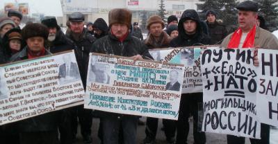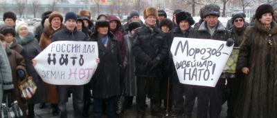 Выступающие говорили о недопустимости предоставления священной земли России для базы агрессивного военного блока НАТО, возмущались лицемерием представителей власти, без зазрения совести утверждающих, что будет создана не база, а всего лишь перевалочный пункт для вывоза имущества из Афганистана. Митингующие заявили, что они не доверяют этим людям, пришедшим к власти в результате сфальсифицированных выборов. Были приведены примеры невыполнения обещаний, щедро раздававшихся в ходе предвыборных кампаний. Упомянули при этом и заверение, что пенсионный возраст в стране не будет повышаться, хотя, как стало известно, в правительстве разрабатываются планы такой пенсионной реформы.