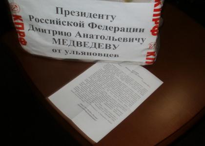 27 марта в приемные Президента РФ Медведева, премьер-министра, «беспартийного лидера правящей партии» Путина и губернатору Морозову эти подарки доставлены. Упаковка с сорока рулонами туалетной бумаги и резолюция митинга без каких-либо проблем были оставлены в приемной Президента, которая находится в офисе Главного федерального инспектора по Ульяновской области г-на Козина.