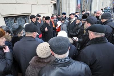 Лидер столичных коммунистов рассказал, что заявки на проведение пикетов были поданы на 3-е, 4-е, 5-е и 6-е апреля. Время их проведения – с 14 до 16 часов. Однако незадолго до начала сегодняшней акции раздался звонок из мэрии с предложением сесть за стол переговоров. Такие переговоры начнутся в 18 часов. Поэтому сегодня коммунисты решили провести мероприятие в форме встречи депутатов с избирателями. «Мы намерены настаивать на проведение митинга 7 апреля на Театральной площади, - подчеркнул В.Ф. Рашкин, - Будем предлагать только этот вариант. Надеюсь, разум возобладает. В противном случае мы продолжим пикетирование мэрии и готовы жестко отстаивать свое законное право на проведение публичных акций. Информацию об исходе переговоров обязательно доведем до общественности и партийного актива».