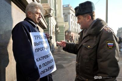 Однако координатор "Левого фронта" говорит, что люди стояли на расстоянии друг от друга, и это был пикет. Его участники протестовали против внесения поправок в закон "О приватизации жилищного фонда РФ", который предусматривает отказ государства от обязательств по проведению капитального ремонта домов, отметил Удальцов.