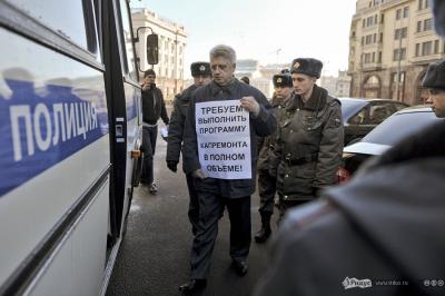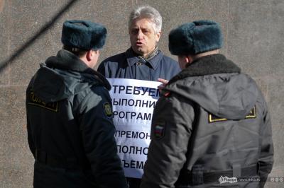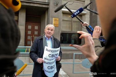 "Я как увидел акцию протеста, сразу понял, что она означает, и счел своим гражданским и политическим долгом поддержать, особенно в условиях этого варварства, которое творилось на моих глазах. Я имею ввиду задержание людей совершенно необоснованно. Это чистое безобразие, когда людей с мирным протестом, одиночными пикетами хватают и тащат в автобус. Это вызывает полное негодование", - сказал В.Н. Тетекин, который несколько минут простоял с плакатом "Выполняйте свои обязательства".
