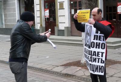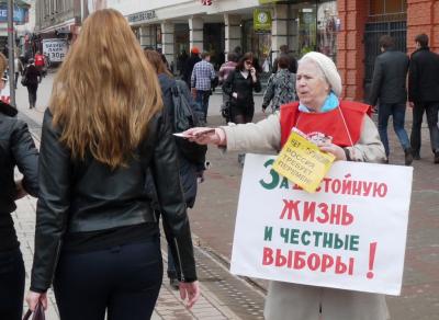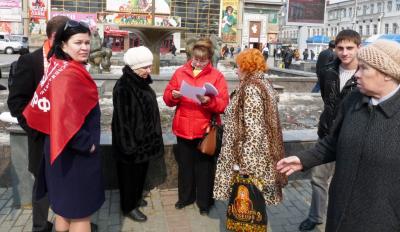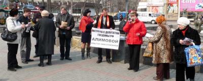 Во время проведения встречи с депутатом Госдумы РФ Ольгой Алимовой активисты компартии провели серию одиночных пикетов вдоль центральных улиц города: пр. Кирова и ул. Чапаева.