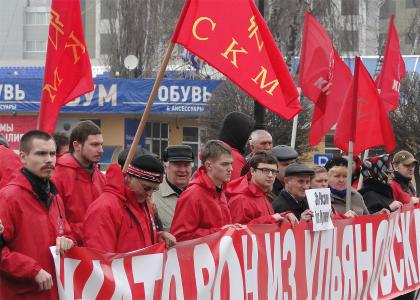 7 апреля, в субботу, сотни курян вышли на Театральную площадь областного центра, чтобы вместе с оппозицией и всей Россией решительно сказать власти «Область требует перемен!», а также показать крайне негативное отношение к созданию в Ульяновске, на родине В.И. Ленина, «перевалочного пункта» для транзита грузов НАТО из Афганистана.