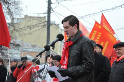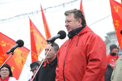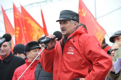 Следующим выступил первый секретарь Одинцовского районного отделения КПРФ Московской области А.П. Галдин. По его мнению, в России сегодня свирепствуют ложь и обман. Он напомнил о счастливой жизни в СССР, когда граждане страны жили по правде и чувствовали себя хозяевами страны. А.П. Галдин посетовал на то, что сегодня нас даже лишили права указать свою национальность в паспорте. Он гневно рассказал о том, что земли Московской области стали передавать городу Москве, а жителей русских деревень, по его мнению, пытаются загнать в резервации. «Землю – крестьянам! Фабрики – рабочим! Мир – народам!», - потребовал оратор.