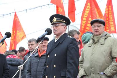 От Всероссийского движения в поддержку армии, военной науки и оборонной промышленности выступил В.М. Усов. Он напомнил об общественном трибунале, который во главе с В.И. Илюхиным вынес обвинительный приговор Путину. По мнению В.М. Усова, кремлевские правители сегодня готовы снять перед западными партнерами не только галстуки, но и штаны. Он предрек нашим правителям судьбу бояр-предателей, которых 400 лет назад прогнали из Кремля ополченцы Минина и Пожарского.