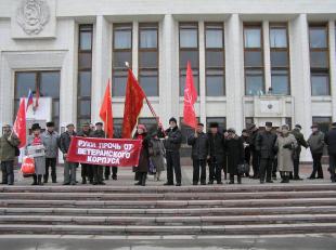 В пятницу 6 апреля Калужский городской комитет КПРФ организовал пикет у областной администрации под лозунгом «Руки прочь от ветеранского корпуса!». На акции распространялся спец-выпуск городской газеты «Коммунист Калуги» с открытым письмом ветеранов к губернатору, министру и в прокуратуру области. В газете также опубликовано политическое заявление калужских коммунистов о нечестных и нелегитимных выборах 4 марта «Нечестные выборы – бесчестная власть» и против базы НАТО на территории России «Мы против базы НАТО в Ульяновске».