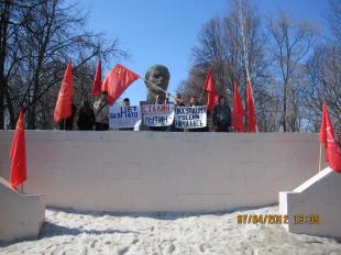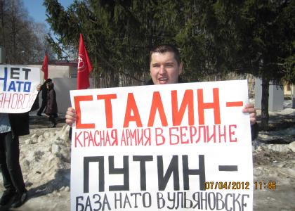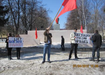 В солнечный апрельский выходной, 7 апреля, на площади Мира у памятника В.И. Ленину комсомольцы и поддержавшие их коммунисты г.Жигулевска провели пикет на тему «Нет базе НАТО в Ульяновске!».