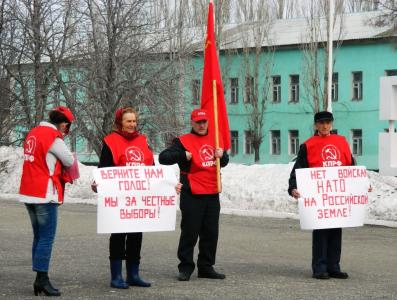 Активисты местного отделения КПРФ вышли к памятнику В.И. Ленину с плакатами «Нет войскам НАТО на Российской земле!», «Верните нам голос! Мы за честные выборы!».