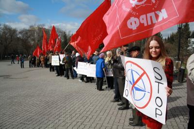 Сегодня в Первомайском сквере состоялась акция протеста против создания в Ульяновске базы НАТО. Коммунисты и сторонники партии потребовали от власти разорвать соглашение с Североатлантическим альянсом.