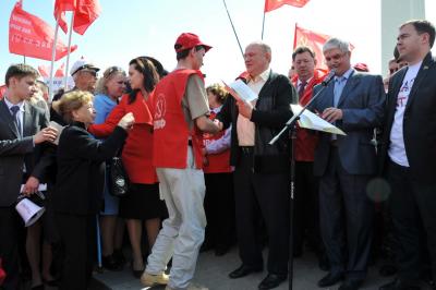 21 апреля в городе Ульяновске состоялся митинг КПРФ против размещения в этом городе военной базы НАТО. На митинге выступил председатель ЦК КПРФ Г.А. Зюганов.