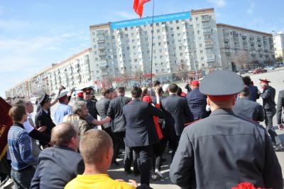 Митинг состоялся на площади 30-летия Победы в полдень.