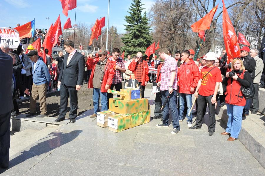 Первый секретарь ЛКСМ Нижегородской области М. Буланов рассказал о том, как в 2006 году натовские вояки планировали провести военные учения с применением тяжелой боевой техники в его регионе, тогда эти коварные планы совместными усилиями коммунистов и патриотических организаций удалось сорвать. Комсомолец Буланов выразил уверенность, что в этот раз очередная вылазка НАТО в Россию будет сорвана. «Янки – вон из России!», - вместе с Булановым дружно скандировали митингующие.