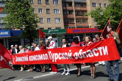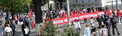 1 Мая состоялась традиционная демонстрация трудящихся и в Курске, а также во многих районах области. Это не та демонстрация, где идут одни чиновники и руководители, демонстрируя не политическую зрелость, а дороговизну нарядов. Наша демонстрация началась в 12 часов 30 минут и собрала около 2 тысяч курян - всех, кто не доволен действиями власти, кто готов бороться за свои права.