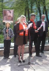У стелы туляков – Героев Советского Союза – остановка. Руководители шествия под траурное «Соловьи-соловьи, не тревожьте солдат…» возлагают цветы к подножию монумента скорбящей Родины-Матери. Поклонившись павшим, двинулись дальше. И вот – сквер Коммунаров, в котором захоронены погибшие в борьбе за Советскую власть. К плитам с их именами ложатся красные гвоздики, после чего член бюро обкома КПРФ Владимир Соколов объявляет митинг открытым.
