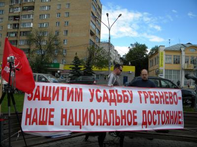 После июньского ливня выглянуло солнце, и площадь Ленина подмосковного Щёлкова огласили звуки патриотических песен, зашелестели на ветру флаги. Но вместо политических речевок молодые ребята из КПРФ, Московского Казачьего отряда, партии «Яблоко» развернули плакаты в защиту поруганного памятника культуры федерального значения – «Усадьбы Гребнево XVIIIвека».