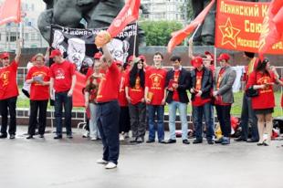 Раздав всю взятую с собой литературу комсомольцы, собрались в центре площади, громко скандируя свои требования: «Нет – развалу! Да - новому Союзу!», «Россия без Путина!», «Мединского – в отставку!», «Ленин! Партия! Комсомол!» и многие другие.
