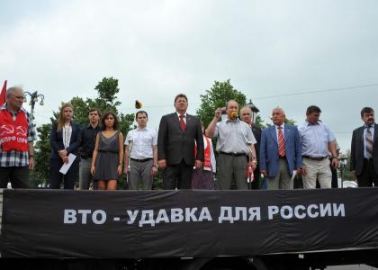 Как заявил в ходе митинга депутат Госдумы от КПРФ, зампред ЦК партии Владимир Кашин, прежде чем вступать в ВТО, российским властям необходимо было принять защитные меры для национальных российских производителей.