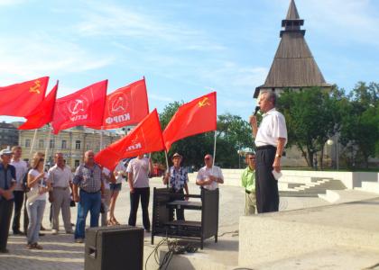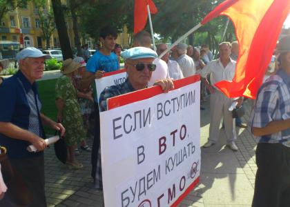 Коммунисты, в свою очередь, помимо борьбы в Госдуме, с целью оповестить население о последствиях, грозящих России от вступления ВТО, 3 июля провели митинги в рамках всероссийской акции протеста. И Астрахань не стала исключением. В 17.00 на площади им.Ленина в самом центре города собрались коммунисты, комсомольцы и небезразличные к этой проблеме граждане города и области.