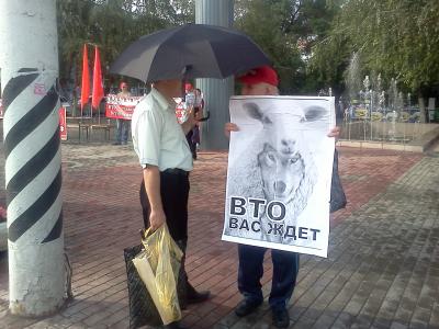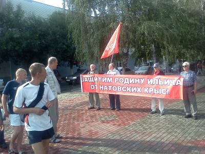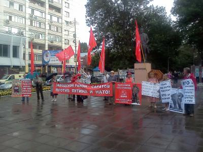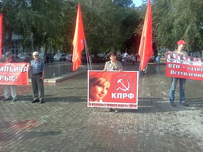 Даже короткий проливной дождь не испугал пикетчиков. Коммунисты города и члены Народного ополчения КПРФ провели пикет против предательской политики руководства страны и партии "Единая Россия".