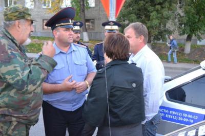Ещё через 15 минут появился заместитель начальника городской полиции полковник Тёткин, который, упорно не называя статьи ПДД, пытался убедить участников автопробега о том, что они эти самые ПДД нарушают.
