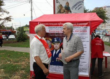 В Краснодаре городским комитетом КПРФ были организованы шесть пикетов с установкой красных агитационных палаток в наиболее людных местах столицы края, вблизи рынков и перекрестков на центральных улицах. Были и плакаты – «Вернем народу украденную Родину!», «Долой коммунальный террор!».