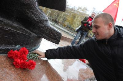 Конечной точкой марша стал памятник комсомольцам у КДЦ «Современник». Здесь состоялся митинг в поддержку кандидата на должность Главы Нижнего Тагила Алексея Кубасова. Выступили сам кандидат А.М. Кубасов, секретарь Свердловского обкома КПРФ Л.А. Журавлева, секретарь Нижнетагильского горкома КПРФ С.В. Смотрин. Комсомольцы возложили красные гвоздики к памятнику и подписали «открытку Путину», где выразили свои требования.