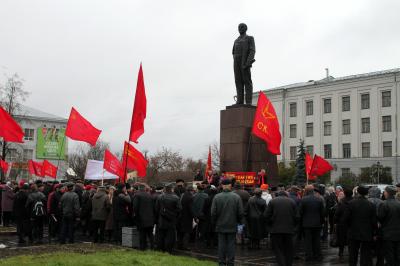7 ноября в Пскове в честь 95-й годовщины Великого Октября прошло праздничное шествие по центральным улицам города. После него у памятника В.И. Ленину состоялся митинг.