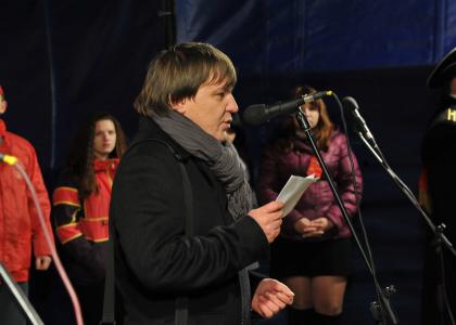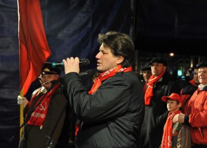Аспирант юридической академии из Екатеринбурга, комсомолец Эдуард Мансуров призвал участников акции теснее сплотиться вокруг КПРФ, под знаменами Ленина и Сталина. По мнению молодого человека, будущее России за левыми идеями. В своем выступлении комсомолец Мансуров выразил надежду, что столетний юбилей Великого Октября мы будем встречать уже не в олигархической России, а в стране обновленного социализма - в стране Советов.